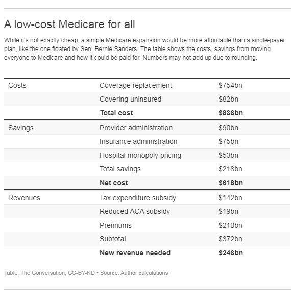 For starters, most everyone would pay the premiums already charged by Medicare. This would generate an additional $210 billion in revenue.